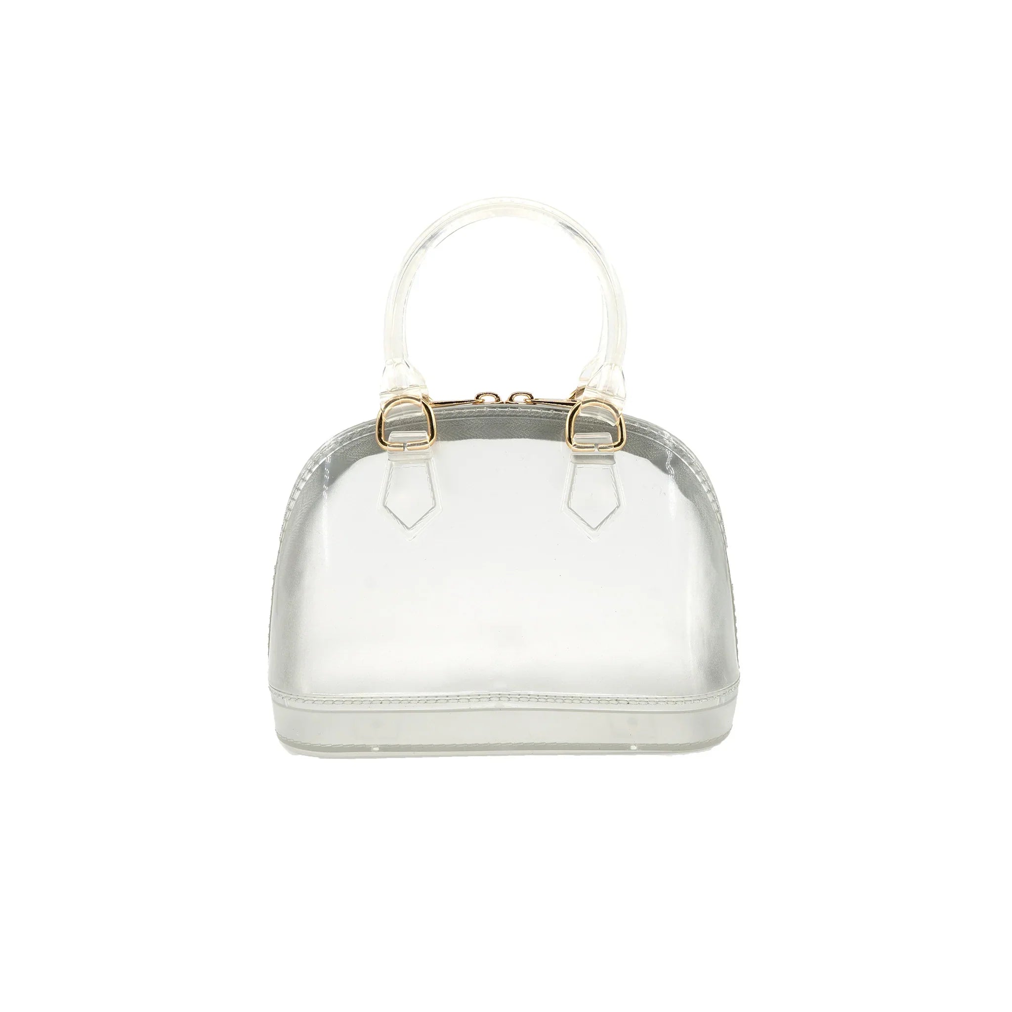Incredible retro-inspired, clear Jelly purse featuring handles & a cross-body detachable strap. Measures 7.25 x 5.5 x 3.25 inches & matches all your Leetie favorites. Zippers are high quality in a gold plating. Nice & light weight, but fits your phone along with a small wallet, a lipstick & all the good things you need. Jelly material is reminiscent of the 'rubber' or plastic used in retro '80's 'Jelly Shoes', only this baby won't give you blisters!